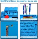 【Reasonable functional partition, clean and efficient】Mat built-in scale ruler (0~36cm), 3 part boxes with cover, 4 magnetic parts areas, 124 screws position, 42 spare unit and 15 notches, easy to classify different small parts.To make your repair work easy.