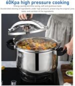 Stainless Steel Material: The pressure cooker is made of stainless steel material, which has characteristics such as high temperature resistance, ensuring the quality and service life of the cooker.