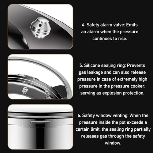 Stainless Steel: Made with premium stainless steel, this pressure cooker is resistant to high temperatures, and can withstand long time use, providing durability for your cooking journey.