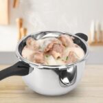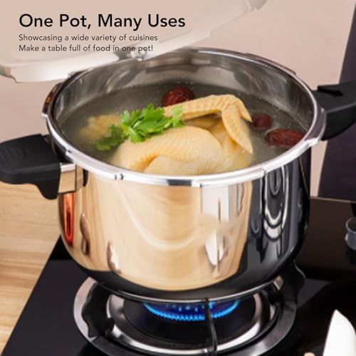 EFFICIENT AND FAST COOKING: Pressure cookers are able to cook food under high pressure environment, which increases the boiling point of water, thus speeding up the cooking speed. Compared with traditional stewing, pressure cooker can greatly save time, while retaining more nutrients of the ingredients.