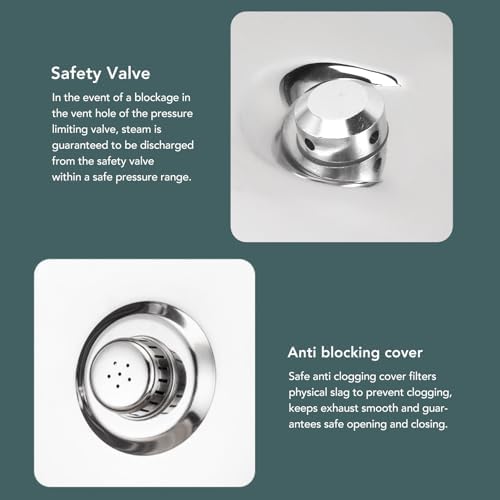 INTELLIGENT PROTECTION: The pressure cooker is equipped with a safety valve and a pressure limiting device, which can intelligently control the internal pressure and ensure the safety of the cooking process. This can effectively prevent explosions and other accidents, to protect the user’s safety.