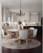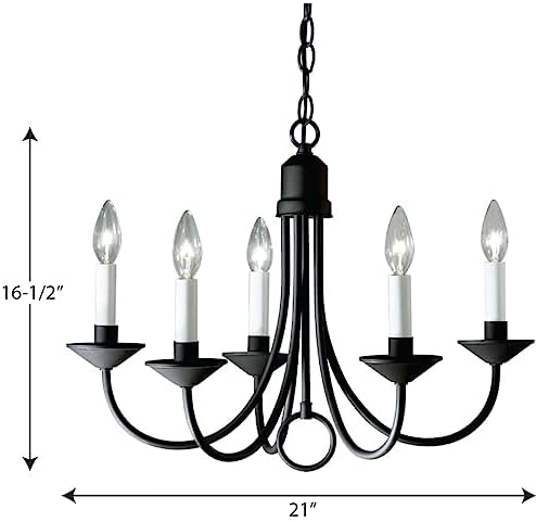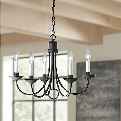 TEXTURED BLACK FINISH: Swooping curved arms coated in a farmhouse-inspired textured black finish add volume to the light fixture.