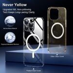 [Never Yellow & Compatible with All MagSafe Accessories] Upgraded IML Non-yellowing Tech Keeps Long-Lasting Clarity, this for iPhone 15 Pro Max Clear Purple case can block up 99.9% ultraviolet rays, stains, fingerprints and sweat effectively.Compatible with all MagSafe accessories provides strong magnetic force(leather wallets, wireless charging stand, battery pack and even in-car mount) for easier attachment and a stronger hold.
