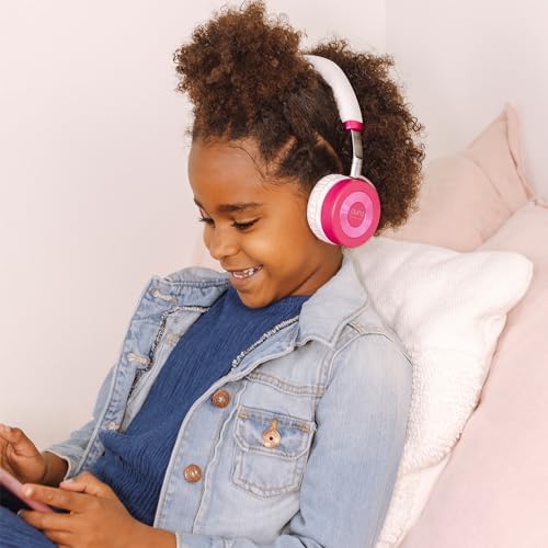Home Electronics Puro Sound Labs JuniorJam Plus Volume Limiting Headphones for Kids, Safer Audio to Protect Hearing- Adjustable Bluetooth Headphones for Tablets, Smartphones, PCs- 22-Hour Battery Life, Pink