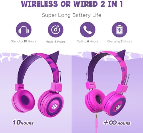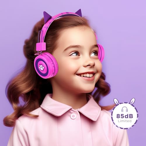 😻【Cute Cat Headphone Design】Featuring the lovely kitty design, this funtional on-ear headphones let your little girls lose themselves in audio book and their favorite songs, specifically designed for kids 3+ year old. Also comes with a lovely gift box. Great birthday christmas gifts for girls kids toddlers children and teens. Perfect back to school supplies essentials accessories.