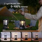 Stepless Dimming – This camping lantern features stepless dimming, allowing for super smooth brightness adjustment with no fixed brightness gears. You can easily adjust the brightness from 50 lumens to 650 lumens as desired. The brightness knob also controls the color temperature, switching between warm, warm white, and white light with a simple turn to the right.