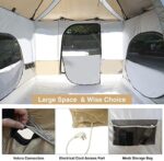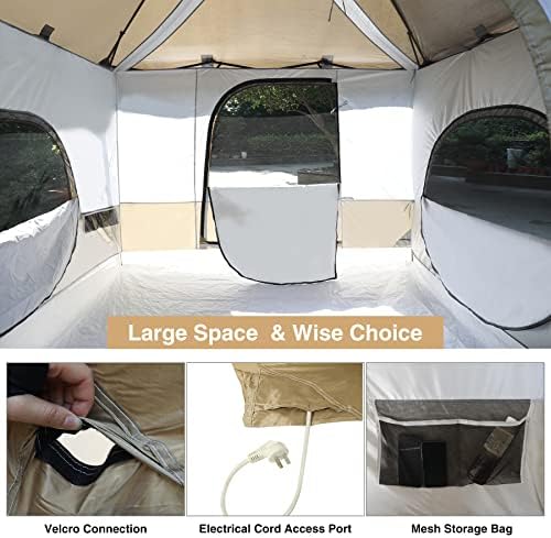 【User-friendly Design】2 extra-wide gate, 2 large windows for cross ventilation, high-quality heavy-duty zippers to make the tent sturdy and durable, electronic ports to provide easy access to extension cables, and a grid storage pocket inside the tent for storing small items such as your mobile phone and cable.