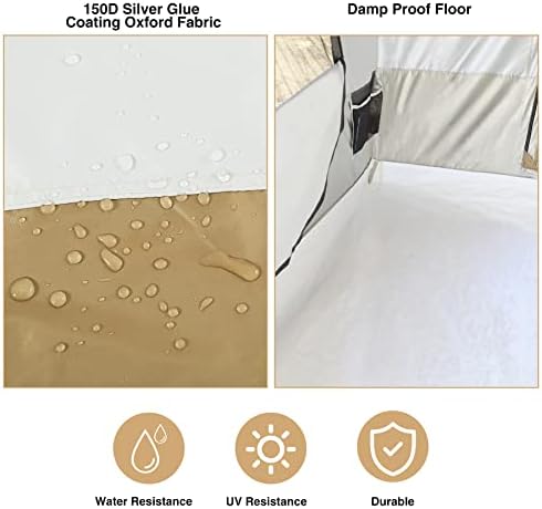 【Quality Materials & Easy to Carry】Made from durable 150D silver-coated Oxford fabric, this camping interior tent is waterproof and UV-resistant, has a net weight of 10lbs/4.5kg and a storage bag for easy portability, making it a necessity for camping outside.
