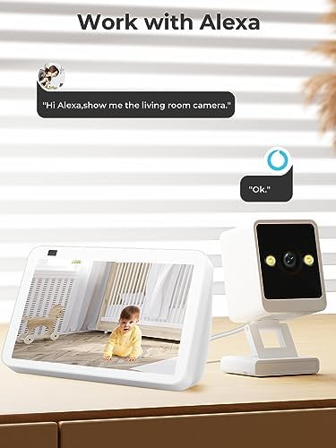 𝟮-𝗪𝗮𝘆 𝗔𝘂𝗱𝗶𝗼 & 𝗔𝗹𝗲𝘅𝗮 𝗖𝗼𝗺𝗽𝗮𝘁𝗶𝗯𝗶𝗹𝗶𝘁𝘆- Our indoor security camera built-in noise-cancelling microphone, allowing you to communicate clearly with your family from anywhere. The camera indoor is fully compatible with Alexa, enabling you to activate the baby monitor camera on the alexa device, call on Alexa to open the cameras for home security indoor at your doorstep and view real-time video, making your smart living effortlessly enjoyable.