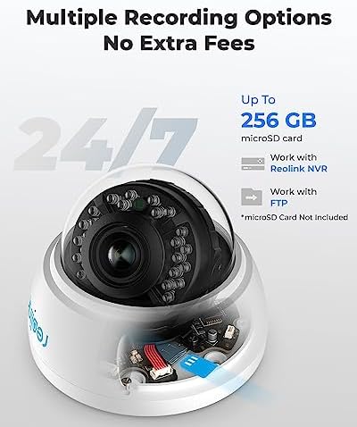 TIME LAPSE & FLEXIBLE RECORDING OPTIONS: Start to shoot time-lapse videos to view the changes of a day in minutes or seconds. 24/7, scheduled, or motion-activated recordings can all be saved to a microSD card (up to 256GB, not included), Reolink NVR or the FTP server.