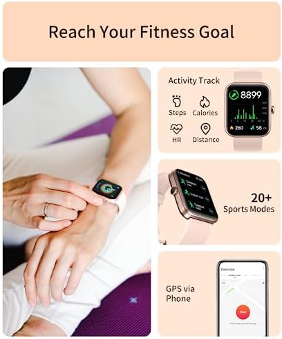 Home Electronics SmartWatches RERE ASW1 Smart Watch for Women, Alexa Built-in,1.69 inch Fitness Tracker with 20 Sport Modes, Blood Oxygen, Heart Rate, Sleep Monitor, 5ATM Waterproof, 10 Day Battery Life, Pink