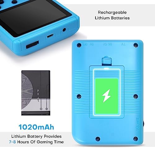 【Portable retro game console】Built-in 1020mAh large-capacity lithium battery. After each full charge, the game can be played for up to 7-10hours. which is ideal for frequent business trips, travel, travel, camping. Never worry about running out of battery again