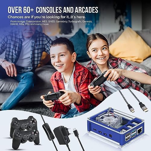 Feast your eyes on this plug and play Retropie kit! Featuring a powerful Raspberry Pi 4B board! Over 50 of your favorite retro consoles! Over 100,000+ of your favorite games! Nothing to configure, hook it up to your TV and you’re gaming in minutes Included analog controllers work great with all the games! Fully loaded 256gb micro SD card installed!