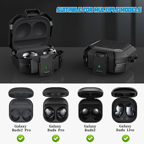 ✔【Materials and Protection】: This cover is made of rugged military-grade hard PC material .The four corners are wrapped with a double-layer air cushion structure. Angle cushion technology protects your Galaxy Buds Live/Pro/2 charging case against bumps, drops and scratches etc.