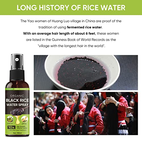 The Yao women of Huang Luo village in China are proof of the tradition of using fermented rice water. With an average hair length of about 6 feet, these women are listed in the Guinness Book of World Records as the “village with the longest hair in the world”. The insistence on using fermented rice water to cleanse their hair is what helps them keep their hair long, dark and clean. Our rice water for hair growth spray is made with fermented black rice filtrate. Using our products, you can also achieve healthy and beautiful hair. Functions of Rice Water Spray: Improves Hair Growth & Regrowth Strengthens Hair Roots & Shafts Promotes Thicker Longer Hair Leaves Hair Silky Soft Shine & Silkiness Better Elasticity 89% of the users showed that they could see the effect of using it in about 2 weeks Ingredients: Black Rice Fermentation Filtrate Ginger Extract Ginseng Extract Hydrolyzed Rice Extract Angelica Extract Sesame Seed Extract Castor Oil Who Is This for? Thinning Hair Weak Hair Hair Breakage Receding Hair Balding Spots Overall Hair Loss Directions: Spray 1-2 pumps to the scalp of the affected area. For best results, massage a while after applying, and leave it on for at least 30 minutes. Daily use is suggested. See results in as soon as 2 weeks of use. Continue use for better results.