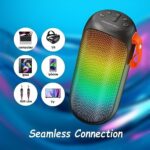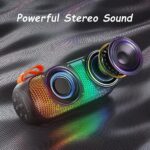 🎷RGB Light: Bluetooth Portable Speaker has RGB lights that react to the tunes for a unique immersive party atmosphere and audio experience. Whether you’re hosting a party or just relaxing at home, the color RGB lights will add an extra dimension to your listening experience.