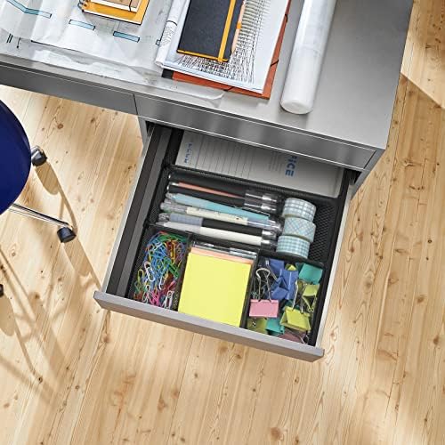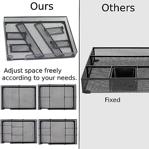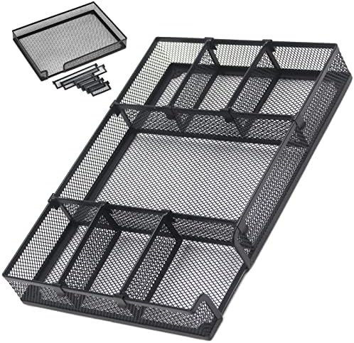 Sturdy Material&Non-Slip – This desk organizer tray features sturdy metal-mesh construction,using electroplating technology with a powder-coated finish,anti-rust and durable,more sturdy than other plastic drawer organizers. 4 cushioning sponge pads at the bottom can prevent the metal drawer organizer from sliding easily everywhere or scratching drawer or desk surfaces.