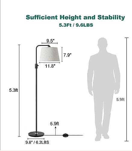 【Sturdy Safe and Easy Assembly】This floor lamp has an excellent stability which profits by its sturdy metal material base, it’s sturdy and tip-resistant, not easy to bent and fall down. Users just need to to screw all the parts together to finish the assembly without any tools required.The length of the power cable is 5.9FT which allows you to place the standing lamp in any place you want.