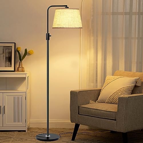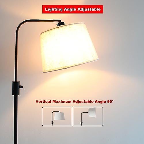 【Angle Adjustable】The lampshade of this floor lamp can be adjusted to vary the lighting angle, supporting maximum 270-degree horizontal adjustment and maximum 90-degree vertical adjustment. Made with premium water oil proof PVC lining and natural linen outer, the lampshade of this floor lamp features both elegant-looking and durable, which is easy to clean and non-deformation.It is suitable for use as a reading lamp and can be placed in both the living room and bedroom.