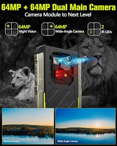 【64MP Night Vision Camera】The night vision lens of Armor 22 has an industry-leading 64MP, along with the advanced Ulefone NightEIf Ultra 2.0 algorithm and less interference. In low light or totally dark environment, you can still capture very clear and detailed images. And combined with IR LEDs and flash modules, the overall module is highly technology-driven.
