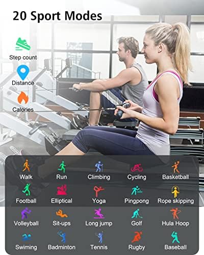 【Multi sports modes & super long battery life】The smart watch defaults to 20 sports modes, including running, walking, cycling, football, basketball, swimming, yoga, hiking, etc. With more than 100 sports modes provided by App, it can meet your daily sports needs and accurately record your steps, calories, distance, etc. Equipped with a large-capacity battery, the battery that can be used for about 5 to 7 days after full charge.The waiting time is approximately 30 days.