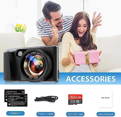 Rumyums 4K Digital Camera Auto Focus 48MP Vlogging Video Camera for YouTube Photography Cameras for Beginners Travel Portable Compact Point and Shoot Camera with Flash 32G Memory Card