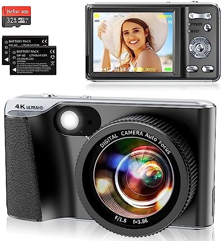 Home Electronics Camera Rumyums 4K Digital Camera Auto Focus 48MP Vlogging Video Camera for YouTube Photography Cameras for Beginners Travel Portable Compact Point and Shoot Camera with Flash 32G Memory Card