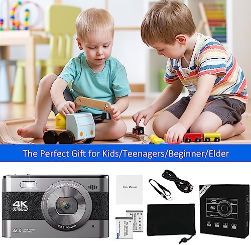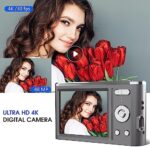 The 4K 30fps video camera is the perfect for traveling and capturing special moments, compact, intuitive and easy to use. What’s more, this 48mp digital camera is with self-timer, continous shooting, flash, loop recording, slow motion, time lapse recording etc.