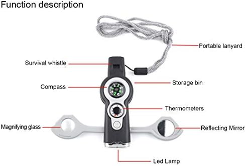 Function introduction: LED light + compass + magnifying glass + reflector + thermometer + sealed compartment