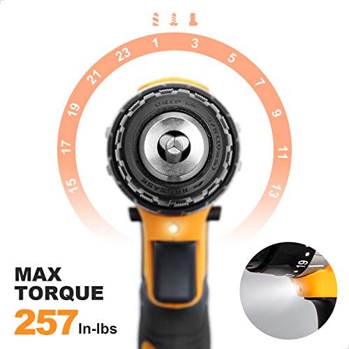 【Compact & Ergonomic】 This cordless drill driver designed with no-slip rubber-covered handle with ergonomic design delivers the maximum comfortable grip for being breezily operated in one hand and less vibration. Only weighs 2.7lbs equipped with one battery, lightweight and compact design makes it easy to be used to some tight areas.