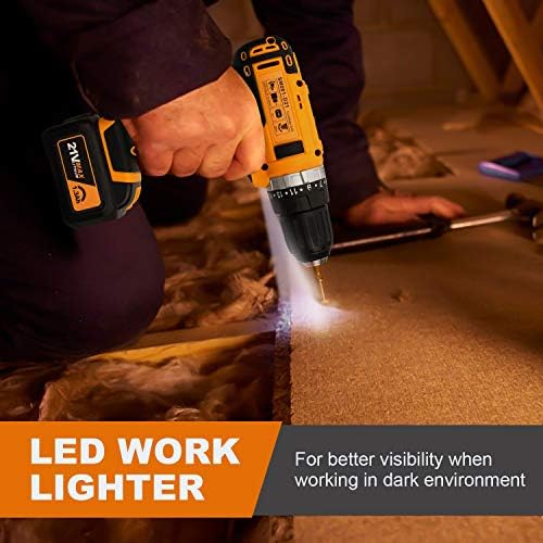 【Built-in LED】 The cordless drill driver is equipped with LED light for illumination and extra security when you work in dark areas, more convenient and safer