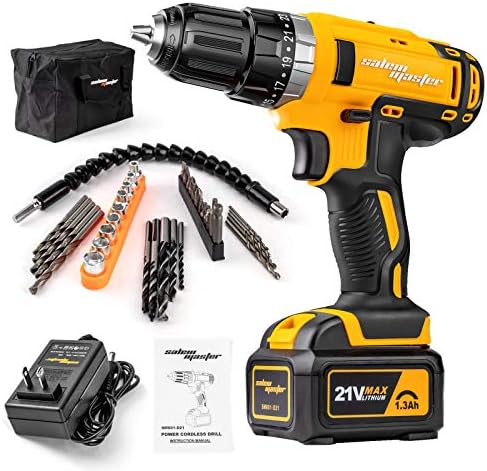 【SALEM MASTER Drill Driver Kit Equipped With 46 Piece Accessories 】You will get SALEM MASTER Cordless Drill Driver, 21V Batteries, 32 Screwdriver Bits, 6 Twist Drill Bits, 3 Woodworking Drills, 1 10’’ Hose, 1 Bit Adapter Rod, 1 Carrying Bag, 1 Fast Charger, 1 User Manual.