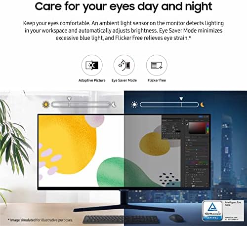 CARE FOR YOUR EYES DAY & NIGHT: An ambient light sensor on the monitor detects lighting in your workstation and automatically adjusts brightness; Eye Saver Mode minimizes excessive blue light, and Flicker Free relieves eye strain