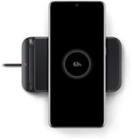 THE RIGHT FIT FOR YOUR GALAXY WATCH: With the dedicated spot for Galaxy watch (1), you can keep your timepiece powered up to get you through your day. An interior magnet on the right side of the charger guides your watch into place to charge. And on the left you can charge your phone, Galaxy Buds series and more.