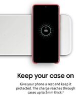 (1) Right pad supports charging for Galaxy Watch3, Active2, and Active smartwatches only. (2) Case material type may affect ability to charge through case.