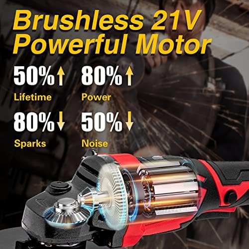 【Safety Protection】 Brushless angle grinder use of a dual switch prevents accidental start-up and provides better user protection during use.Protective cover of the portable grinder will prevent sparks and metal chips during use to protect you from injury.