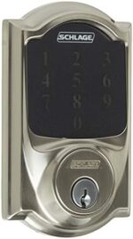 Touch Screen keypad and lock cylinder on exterior and thumb turn interior. Door thickness range is 1.37 to 1.75 standard
