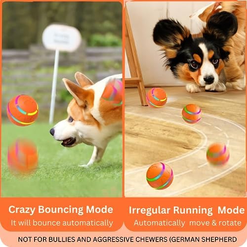 Two Modes Available】This interactive dog toys for large dogs have 2 working modes – Gentle normal mode and Crazy bounce mode, you can freely switch modes via remote control according to your pet’s interest. Normal mode is suitable for wood, tile, and marble floor, the crazy bounce mode is suitable for thin carpets and outdoor lawns, suitable for a variety of use scenarios.