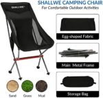 SHALLWE Ultralight High Back Folding Camping Chair, Upgraded All Aluminum Structure, Built-in Pillow, Side Pocket & Carry Bag, Compact & Heavy Duty for Outdoor Backpacking(Pitch-Dark)