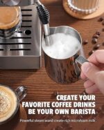 ☕[ MAKE YOUR FAVORITE ESPRESSO-BASED COFFEES AT HOME ] – Our espresso machine has a powerful steam wand, so you can texture creamy, rich microfoam milk to create amazing milk foam art and enhance the flavor of your brews. You can enjoy a barista-brewed latte, cappuccino or macchiato with our coffee machine at home.
