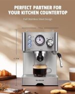 ☕[ STYLISH & USER-FRIENDLY DESIGN ] – The high-grade stainless steel design is suitable for your kitchen. And the espresso machine has a preheating completion prompt and a temperature gauge.