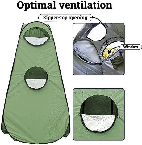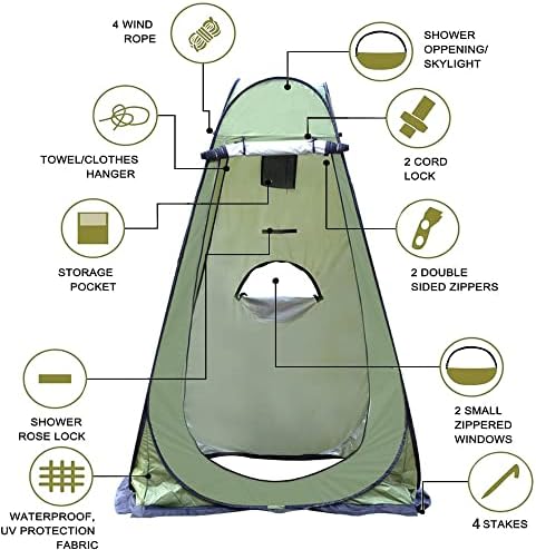 Upgraded Version: this shower tent is specially designed with an zippered window for hanging shower bag; and 2 side zipper windows to deliver great ventilation.With 2 showers fixed velcro,1 side bag to store your phone or other handy items, and 1 clothesline for hanging wet clothes or towels.