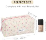 SPACIOUS VERSION & CUTE: Measuring 8.3”x 3.9”x3.9”/21x10x10cm, it offers ample space for all essentials, including full-size skincare.The perfect size for throwing in your backpack, work bag, weekend duffel, and everyday tote! Select your preferred style and begin organizing makeup, skincare, toiletries, pencils, and more.This adorable coquette and aesthetically pleasing makeup bag also make an excellent gift for friends and loved ones
