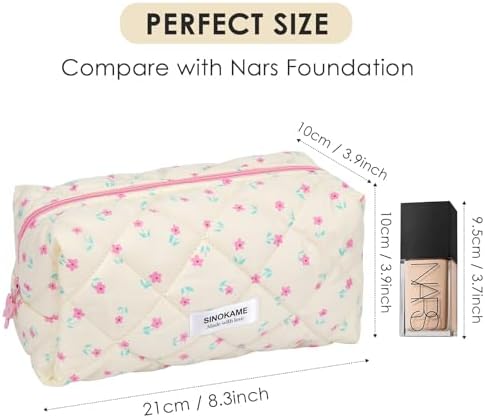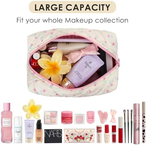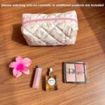 DURABLE CONSTRUCTION: Our quilted cute pink makeup bag is crafted using cotton fabric padding with thicker but puffy polyester, ensuring it retains its shape even when empty.No more floppy and flimsy bags like others on the market.If you want aesthetic stuff,this practical and cute bag are worth trying