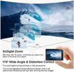 【170° FOV and 8X ZOOM】: With a 170° ultra-wide-angle shooting perspective, you can freely adjust the shooting angle, providing a more immersive visual impact to your videos or photos, Even for selfies, you can easily position yourself in the center. The 8x digital zoom allows you to bring distant landscapes, and placing them right in front of you.