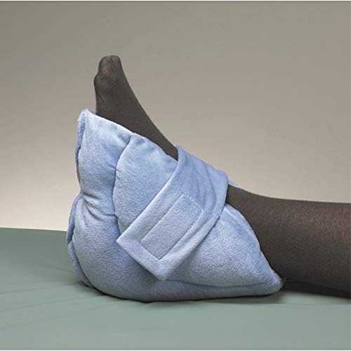 Filled with fluffy spun fiber. May be washed and dried at temperatures that do not exceed 180 degrees F (82 degrees C). Filled with fluffy spun fiber. Covered with low-friction brushed polyester fabric to reduce skin shear. Cover wicks away moisture to eliminate skin-damaging perspiration. Comfortable, extra-wide cloth strap will not irritate skin. Velcro closure keeps heel cushion in place. Reusable and launderable. Meets California 117B flammability standards. New Cozy Cloth cover for reduced friction and shear.