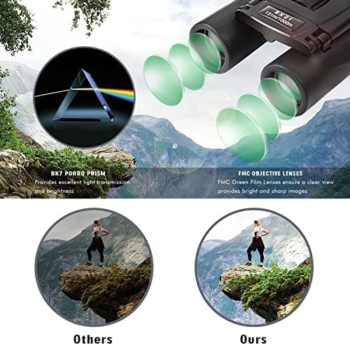[ HD Vision with Quality Optics ] The binoculars lens are made with Bk7 Roof Prism and FMC multi-coated broadband green film increasing light transmission for a brighter view and sharp images.