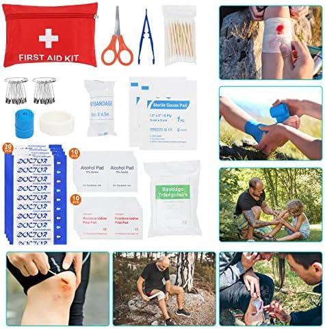 【Exclusive First Aid Kit】: With full range of high quality medical first aid supplies, essential items such as tweezers, scissors, tape, pins, bandages, would pad, bandage triangulaire, cotton buds etc. Perfect for taking care of any medical emergency.