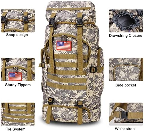 【70L Large Camping Backpack】Camping backpack has a large capacity, and waterproof and cold. The main backpack can hold all kinds of camping equipment, with special pockets next to it for cell phones, charging cables and other electronic devices