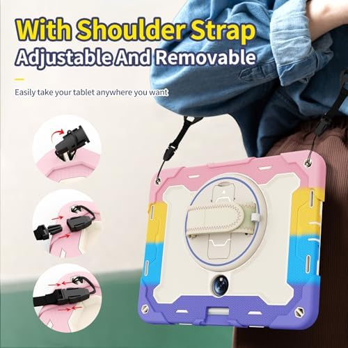 [Swivel Kickstand] The adjustable shoulder strap is great for entertaining on a car trip, plane ride even outdoor activities. You can carry the tablet around to wherever or hung it on the car headrest for back-seat passenger’s entertainment.